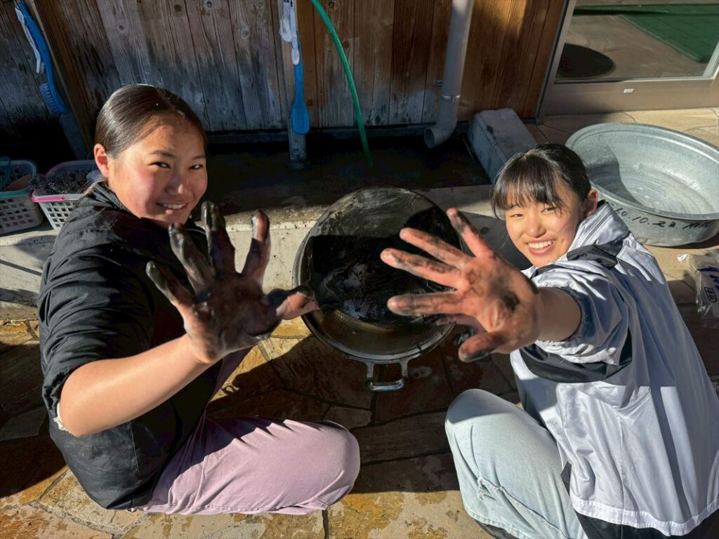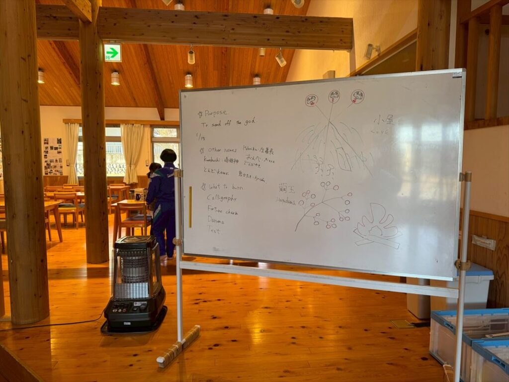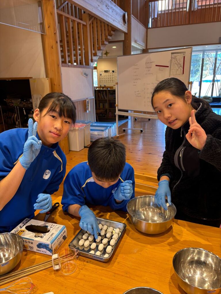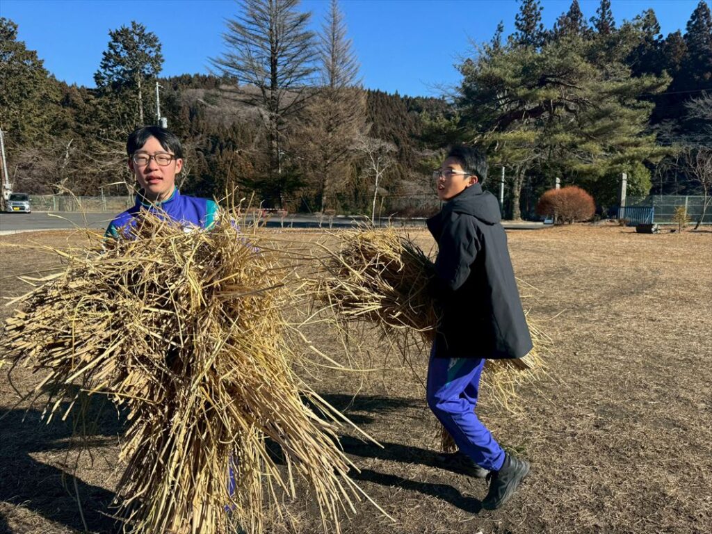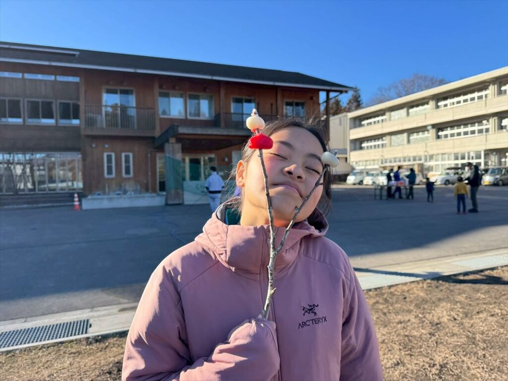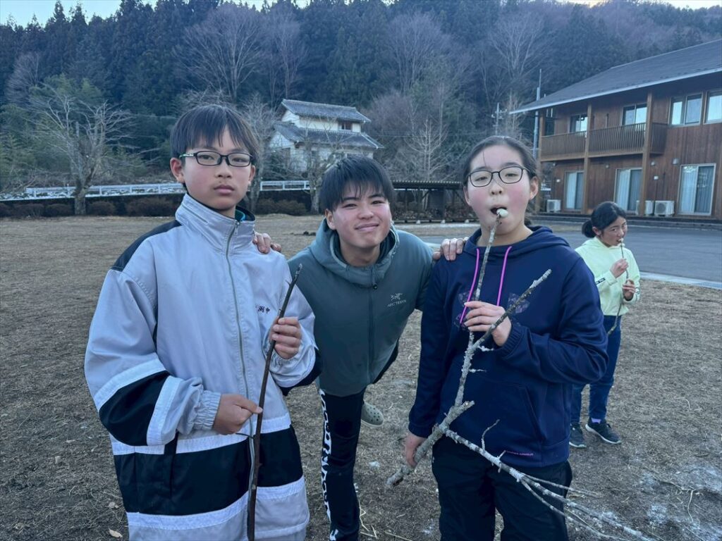 繭玉だけでなく餅やみかんを焼いたりもしました。みんなで火を囲い甘酒を飲んでゆっくり過ごしました。