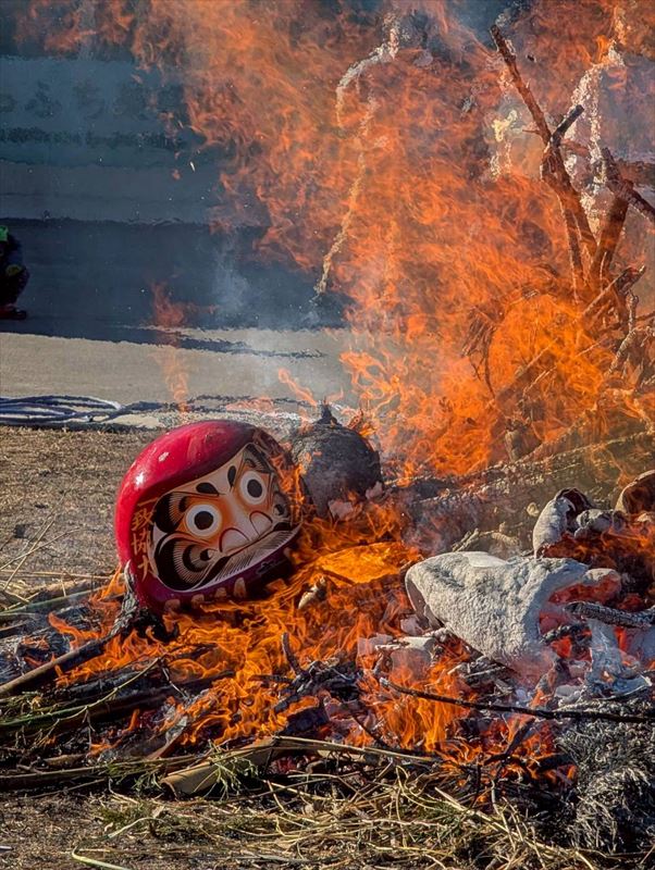 竹の音がすごく大きい!だるまも少しずつ燃えていっているよ