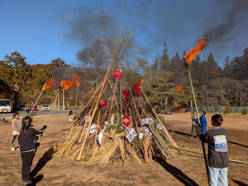 いよいよ点火。年男、年女のキッズたちで火をつけました。