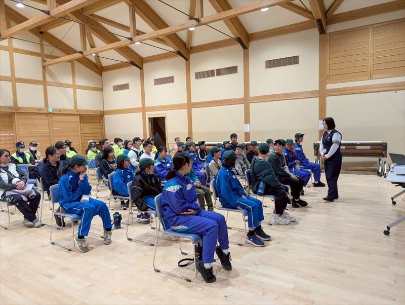 登校練習後には、道の駅で行われた交通安全教室に参加。地域の方々に安全に運転することを呼びかけました。