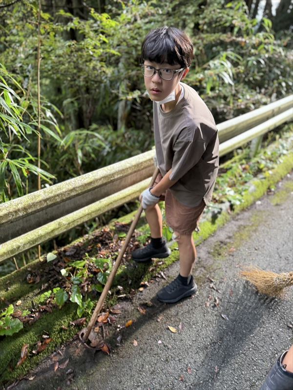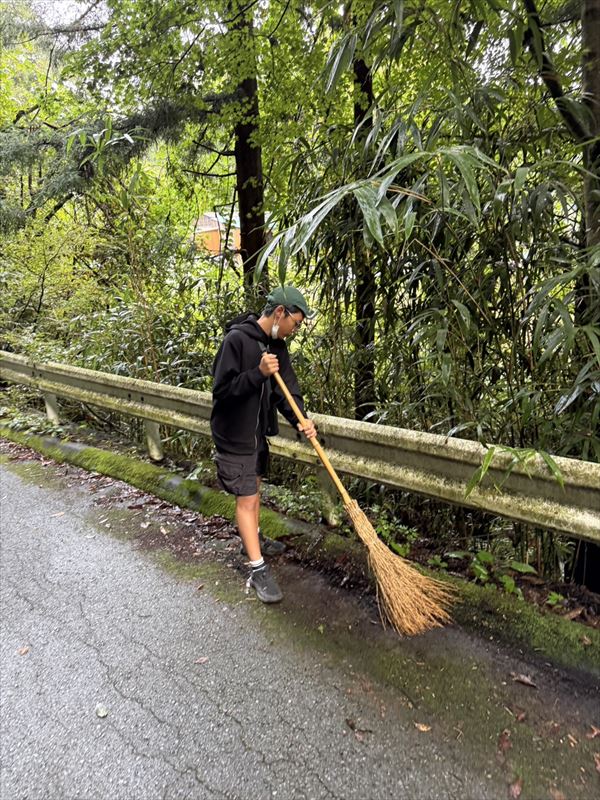 コンクリートの割れ目から生える雑草を抜いたり、落ち葉を掃いて集めたり。