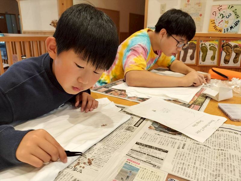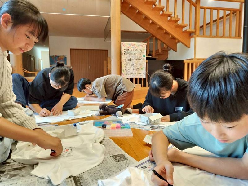 そのTシャツにグループに分かれてワンポイントデザインを追加していきました。思った以上に時間がかかる作業でしたが、各々集中して取り組みました。