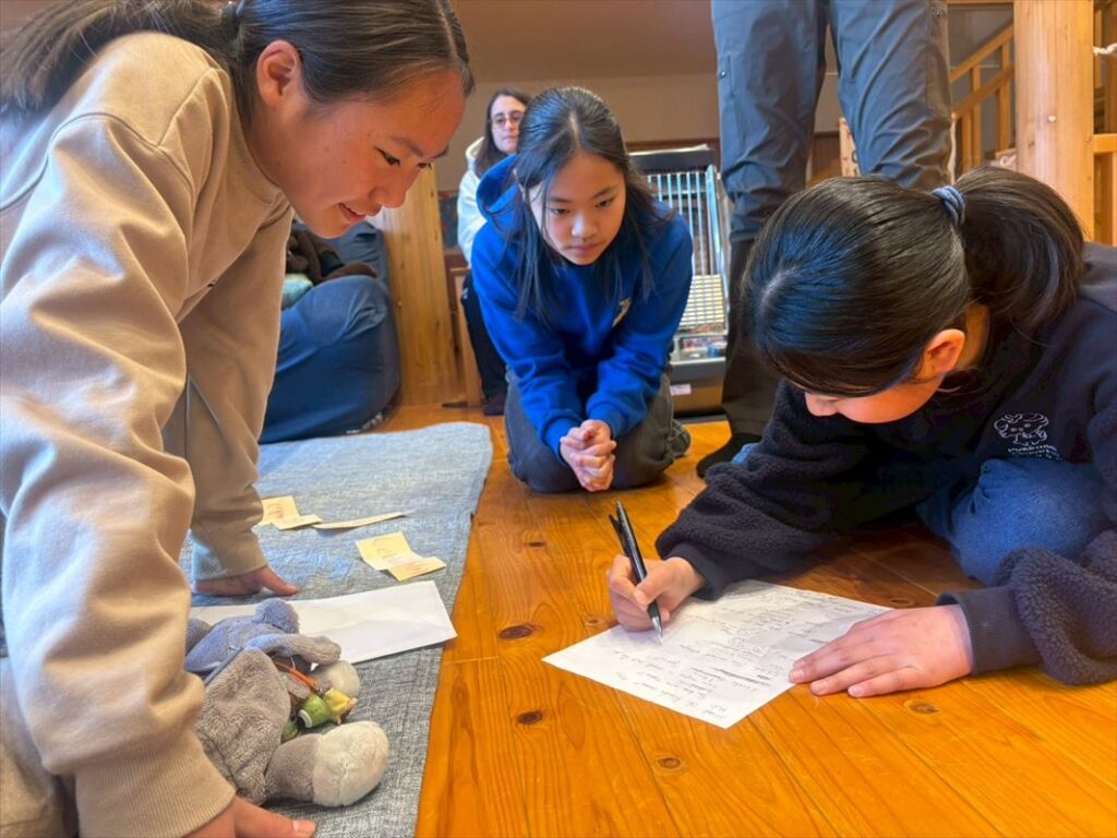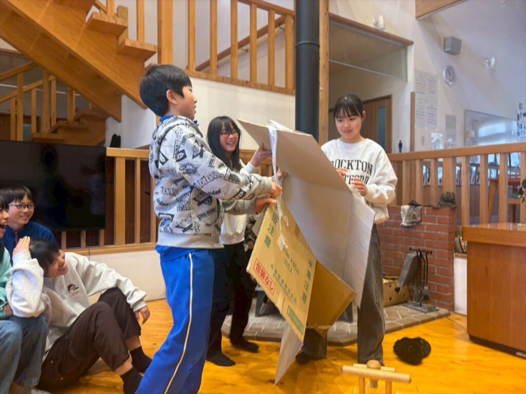 このゲームのフィードバックの時間には、歯ブラシしている時やドライヤーしている時に喋る事が出来なかったり聞こえづらい状況の時には相手の事を考えて伝えることが大事!という意見やKEVでの共同生活では相手の事を思い生活していくことがとても重要、という意見がでました。