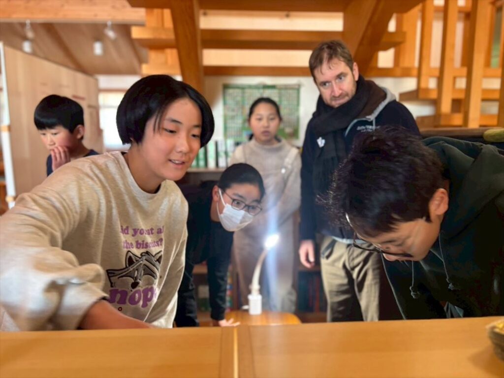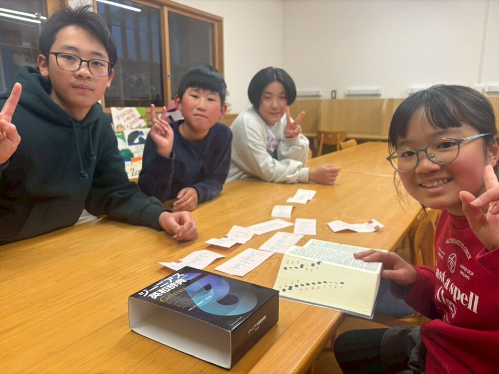 みんなで力を合わせて全単語見つけることが出来ました!見つけた後は、それらの英単語を使い英語の劇を考える時間。
