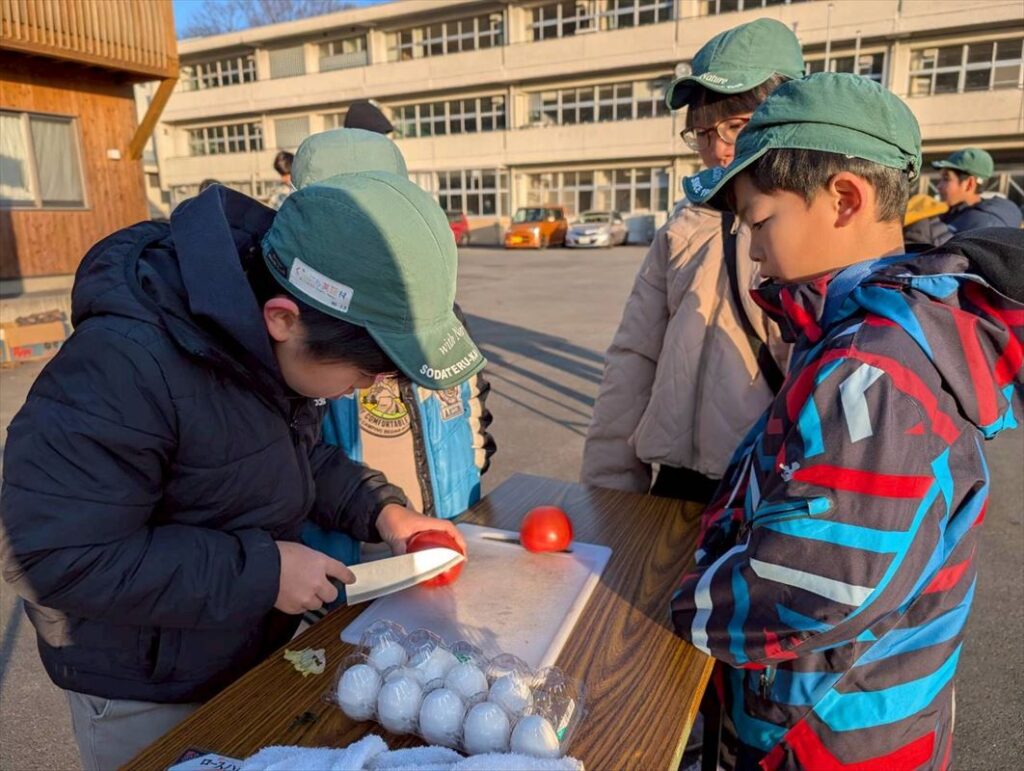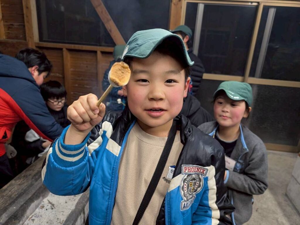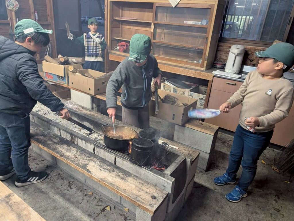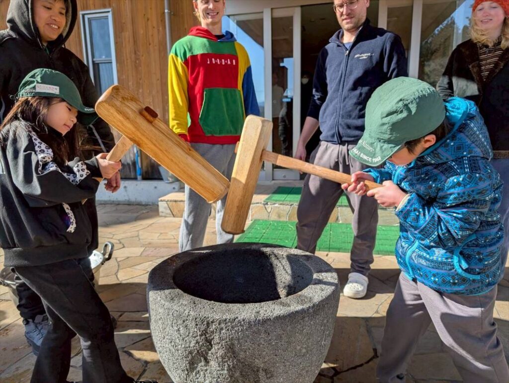 二日目は、朝ごはんづくりと、餅つきをしました。