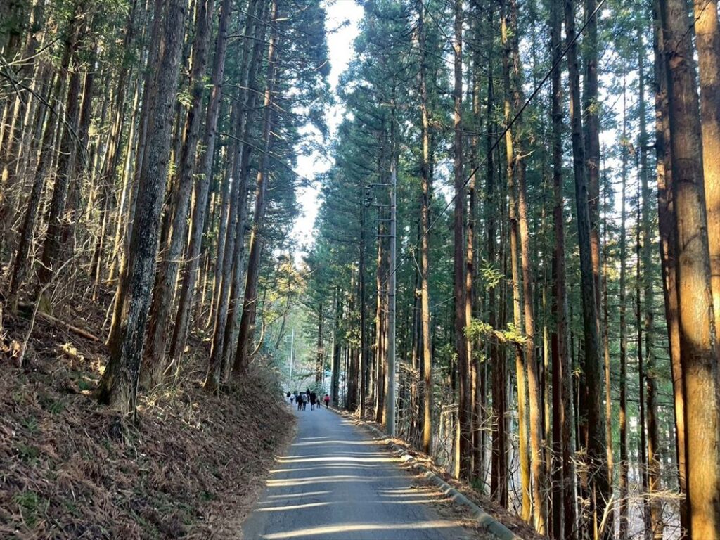 安中榛名駅からのバスを途中で降り、英語村までハイキング!林道には松ぼっくりや栗が落ちていたり、雪が残っていたりして、歩くたび発見がいっぱいありました。