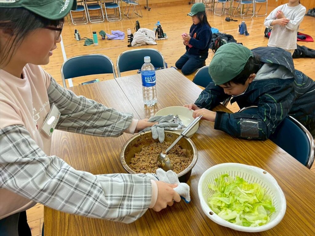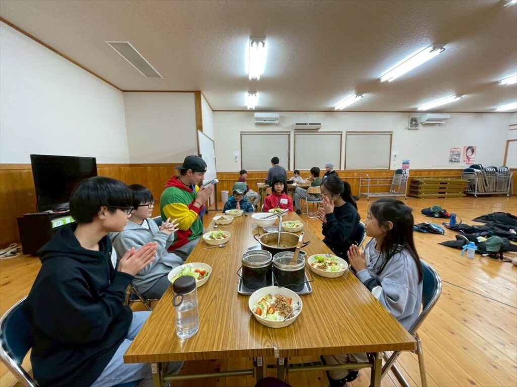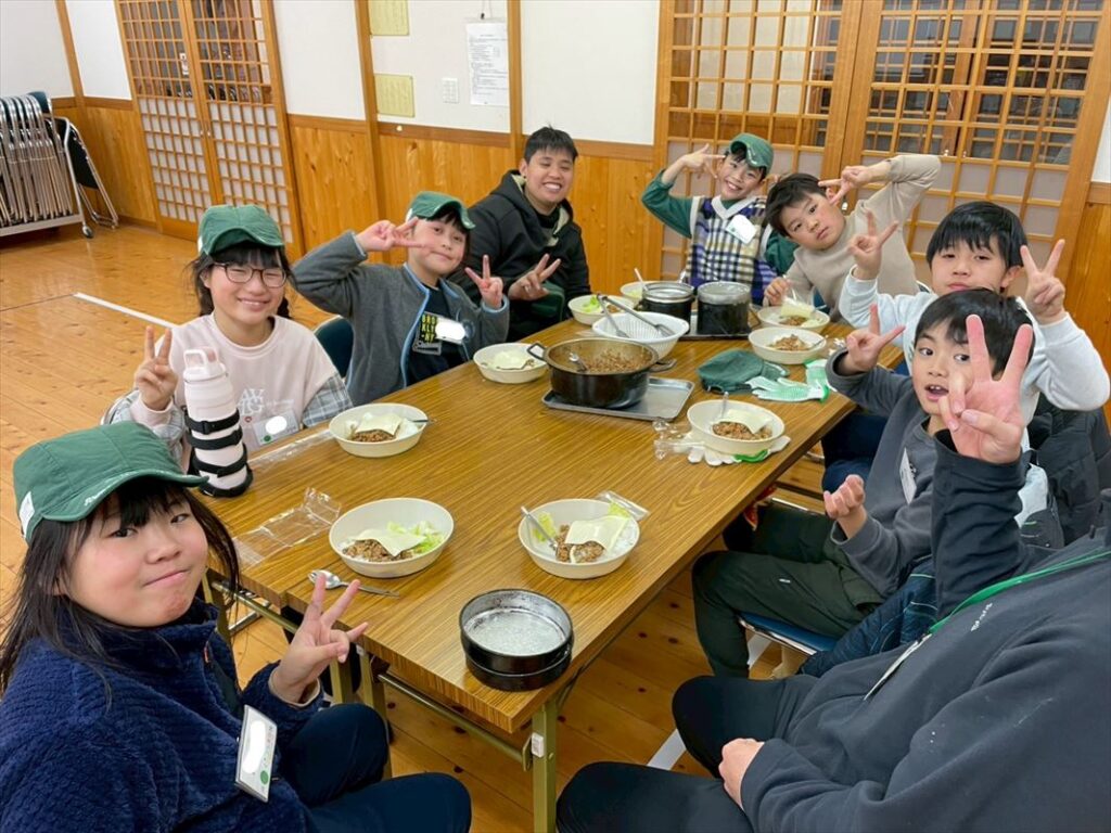 初めて火を起こして、夜ご飯を作る子もいて、ドキドキワクワクでしたが、チームのみんなと協力して美味しいタコライスができました。