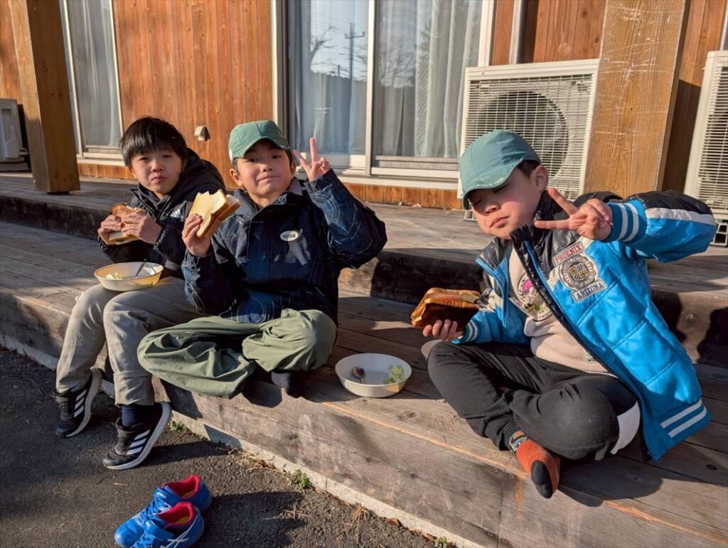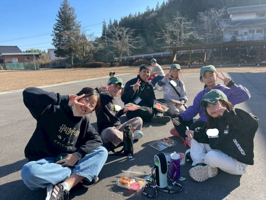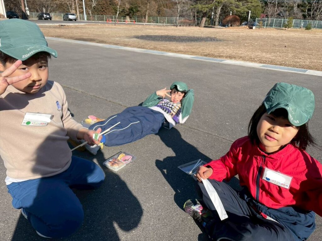 バスやハイキングで仲良くなったお友達と、お弁当を食べたり、一緒に遊んだりしました。