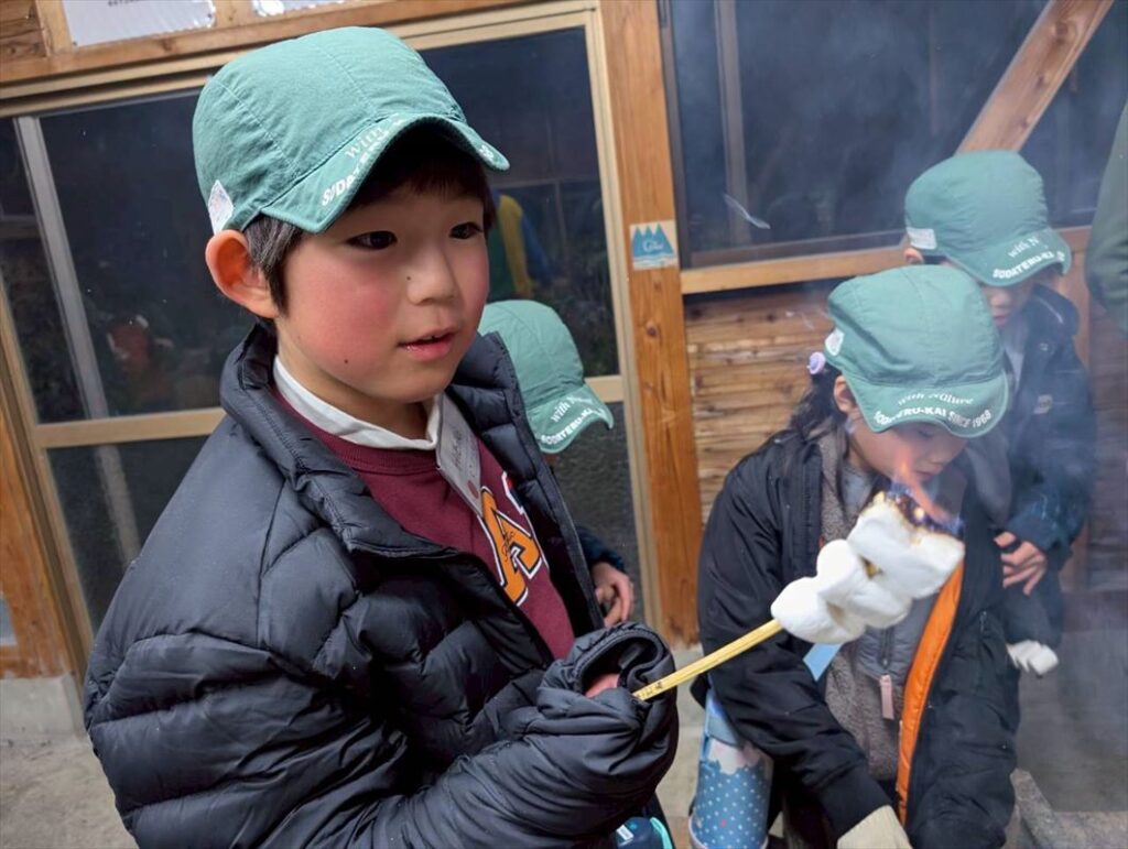 食べ終わった後のデザートはマシュマロを焼いて食べました。