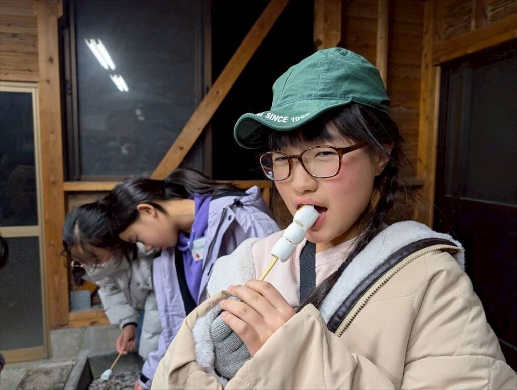 みんなでついた餅を、お昼ご飯の後に美味しくいただきました。