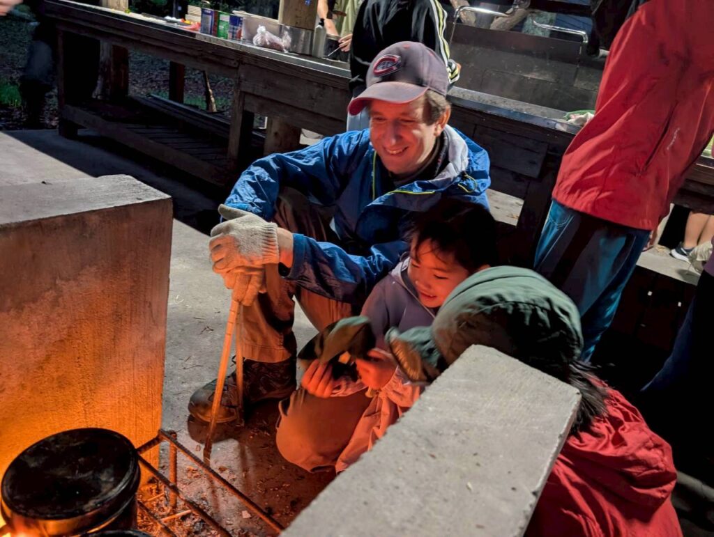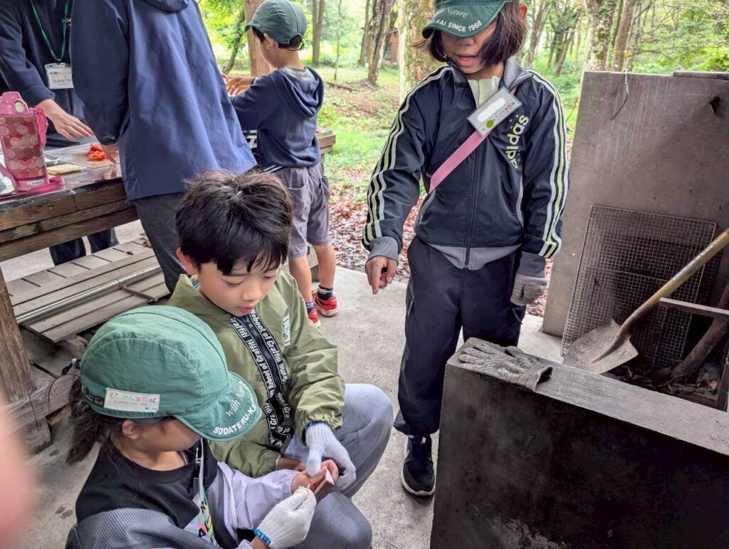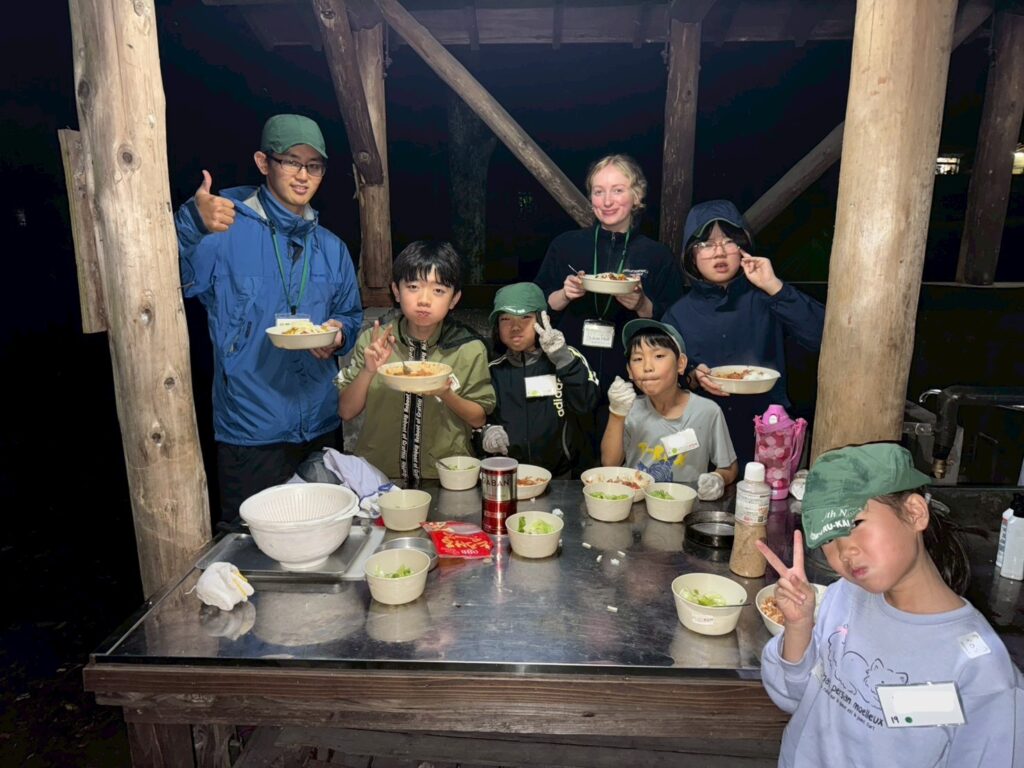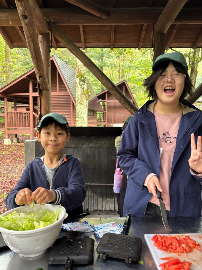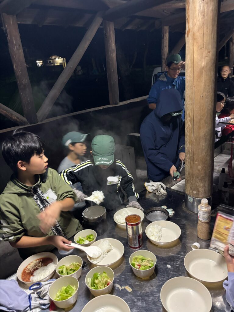 クッキングチームと火起こしチームに分かれ、それぞれが協力して夕食を作り上げました。