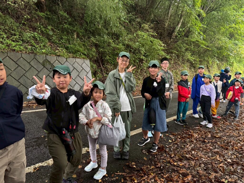 まずは皆で英語村までハイキング!涼しげな林の中を歩いていきました。