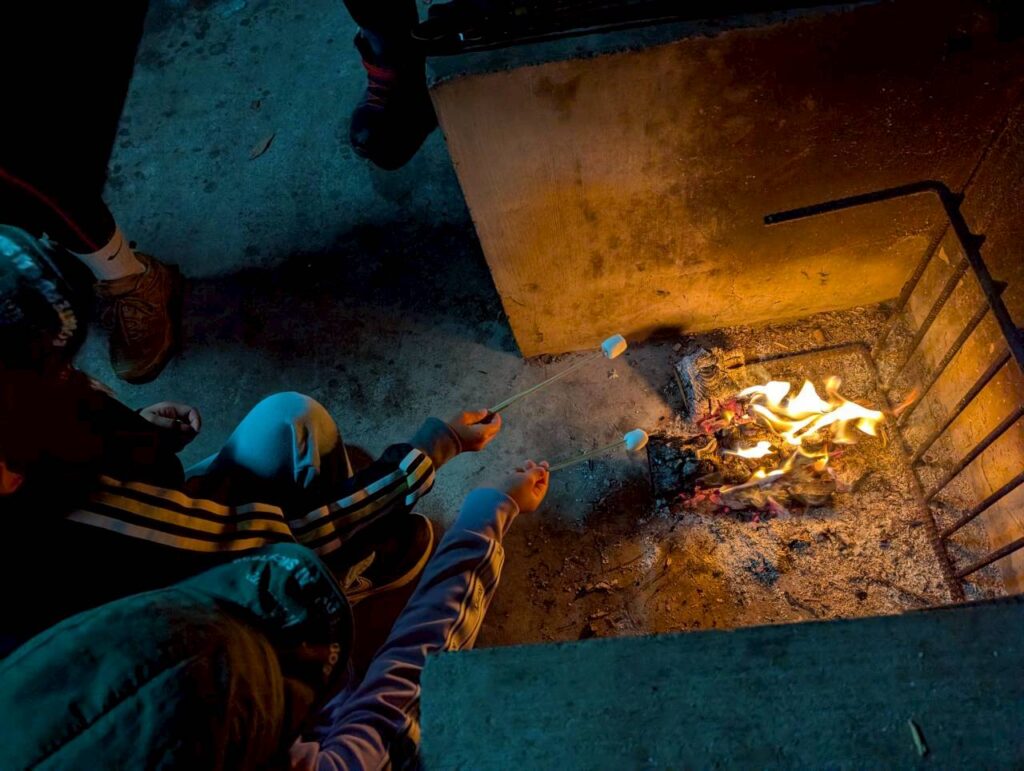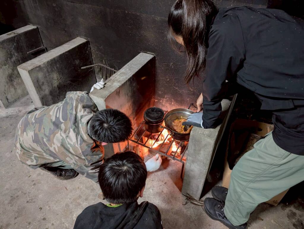 二日目の朝も、自分たちで火を起こして朝ごはんを作ります。