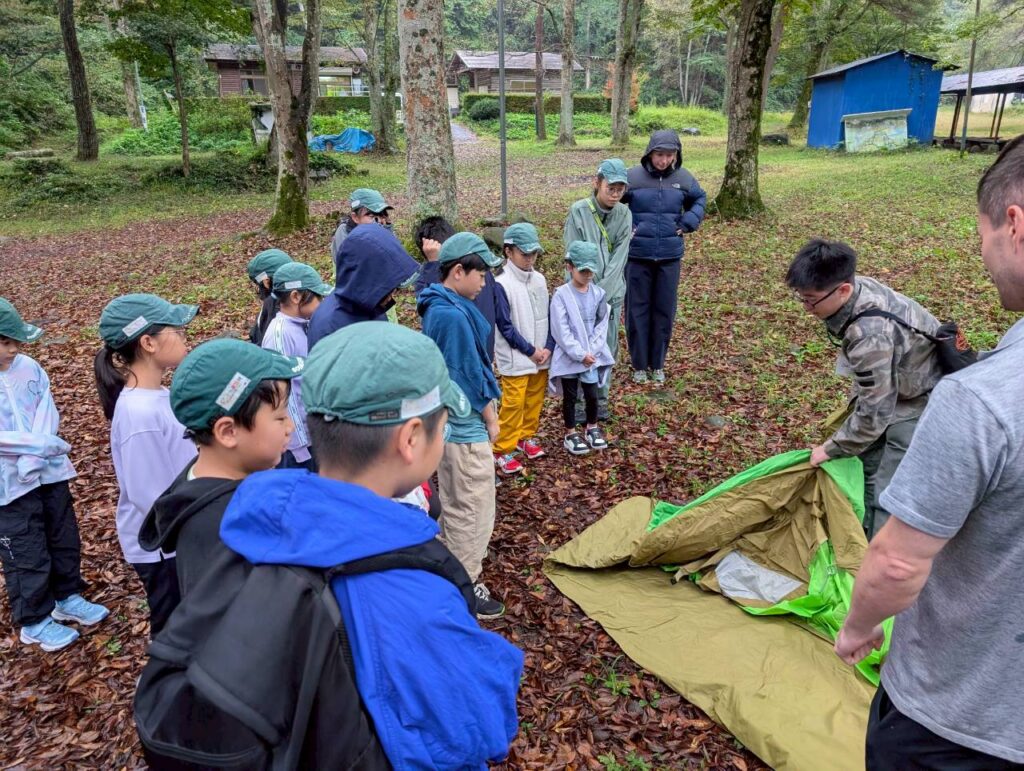英語で説明を受け、子供たちだけで設営。うまくできたかな?