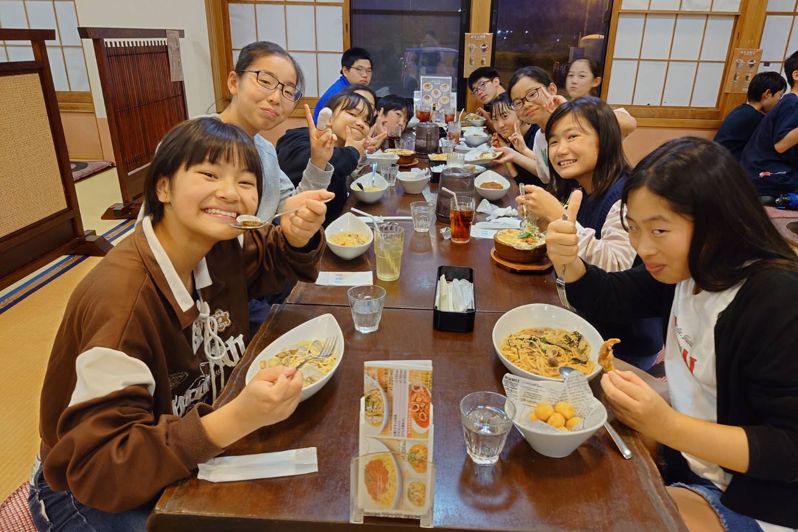 大好きなパスタやピザ、ドリアなどのイタリアンをみんなで頂きました!