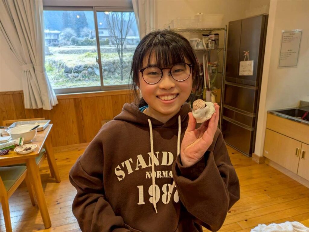 自分たちで焼いた焼きまんじゅうとスタッフが作ったイチゴ大福をおやつに頂きながら鑑賞しました。