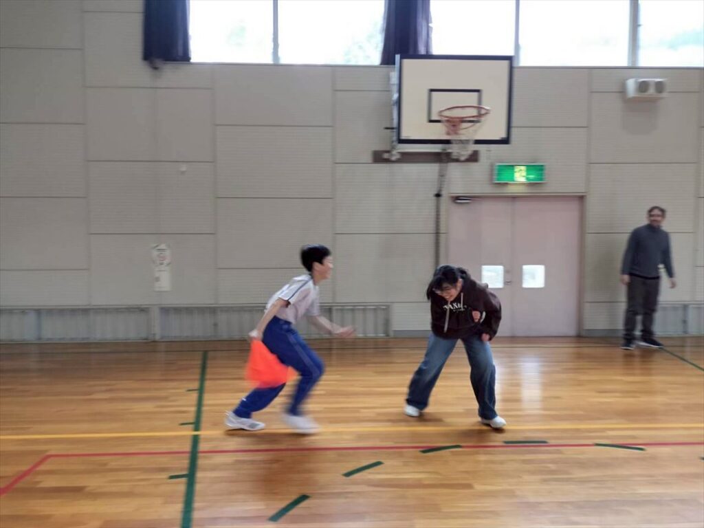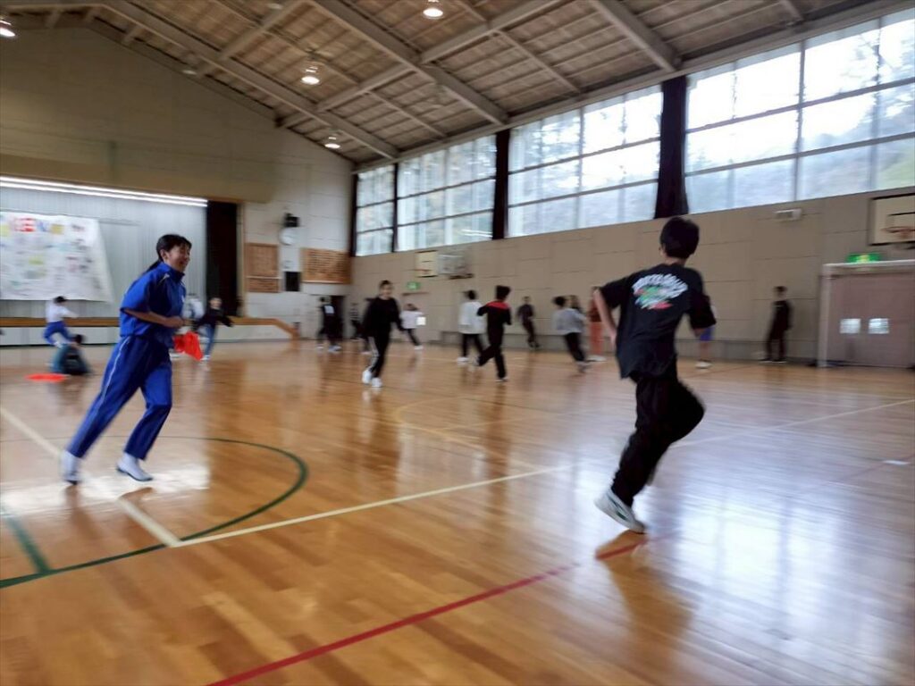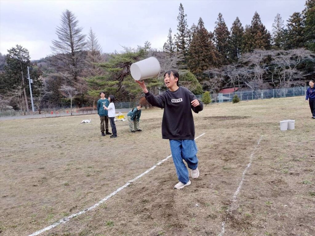 午前中は外で通称「はちゃめちゃリレー」、体育館で多様なゲームを行いました。