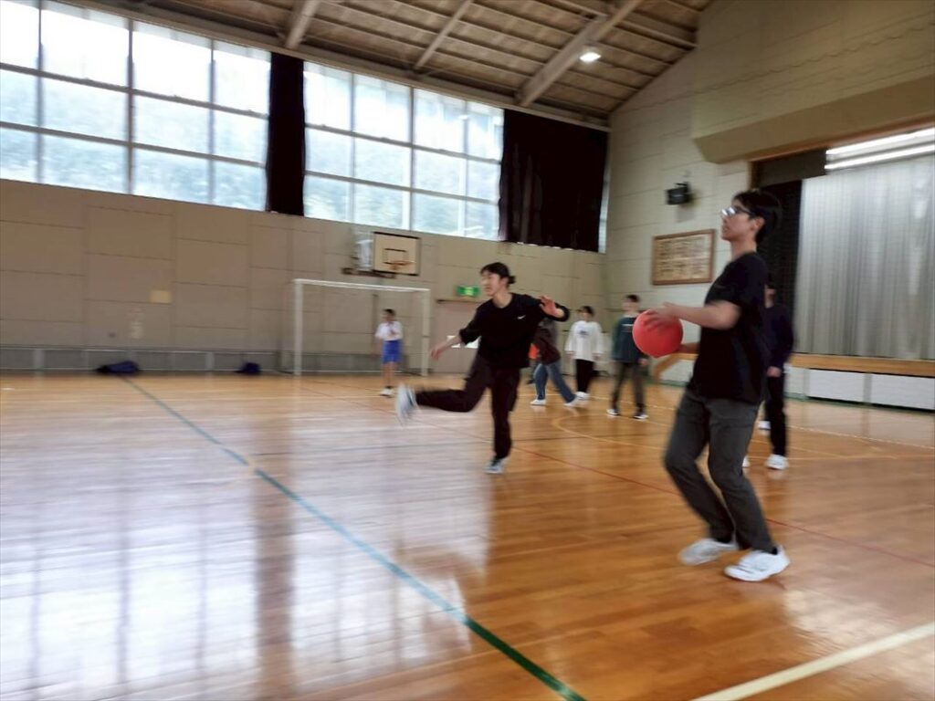 体育館に移動してからは、線上だけを走れるライン鬼ごっこ、みんな大好きアメリカンドッヂボール、大きな大根抜き、じゃんけん列車などに挑戦。