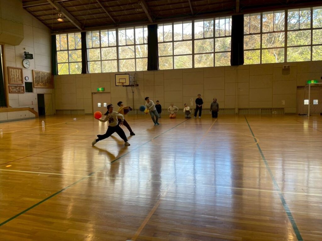 プレゼンテーションが終わった後は、ジムに行ってカナダ式ドッヂボールを楽しみました。