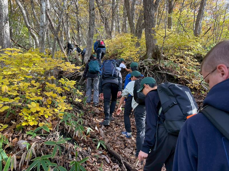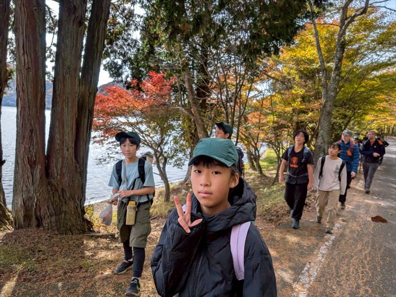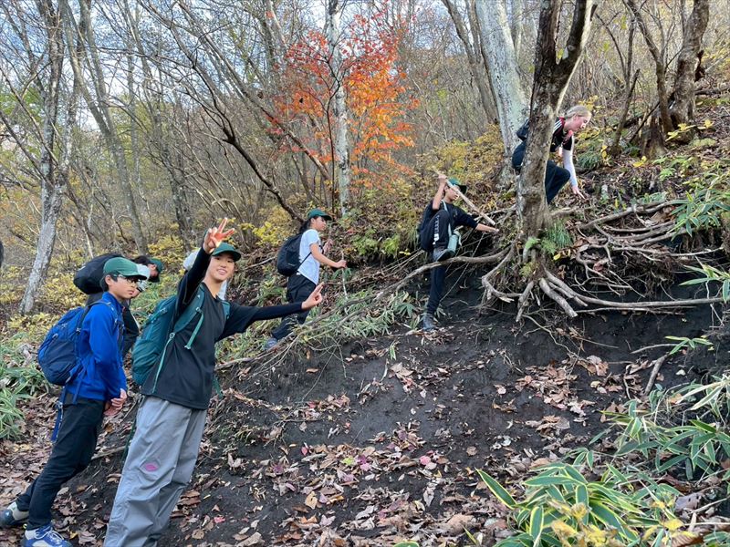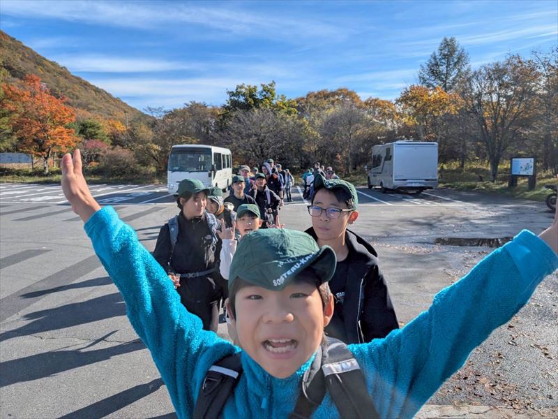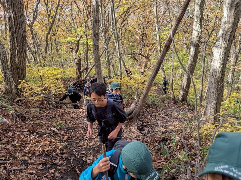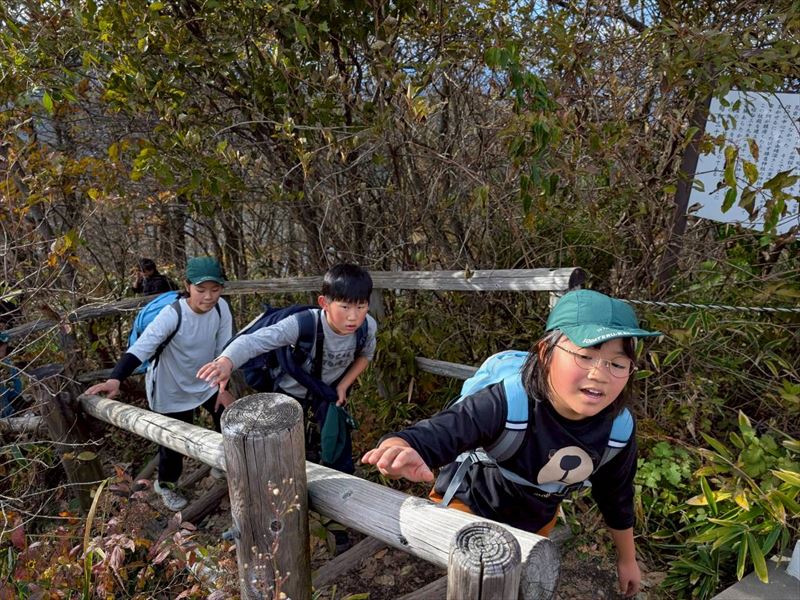 この日は紅葉真っ只中で、子どもたちも景色に見とれながら登山を楽しんでいました。
