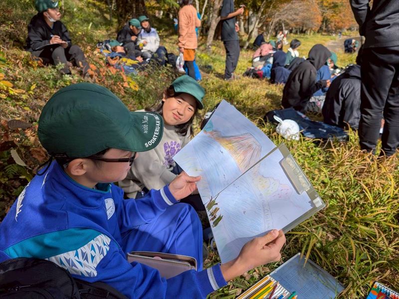 テーマは榛名ハイキングについて。「あれ描いていい?」「こうやって描いたらどうだろう?」