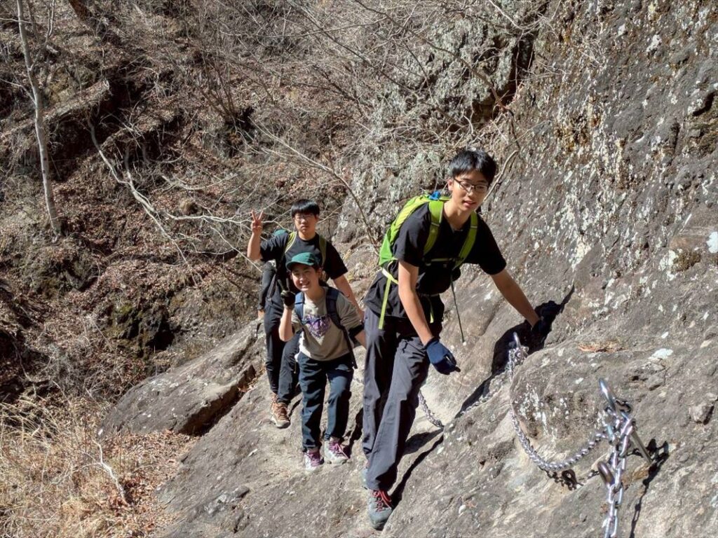 下りは足場が見えづらくさらに難しく感じましたが、全員無事に鎖場を超えました。