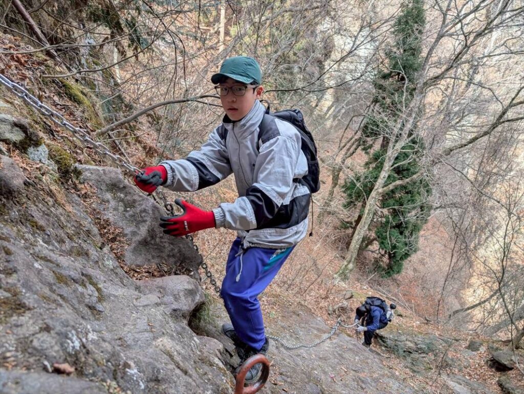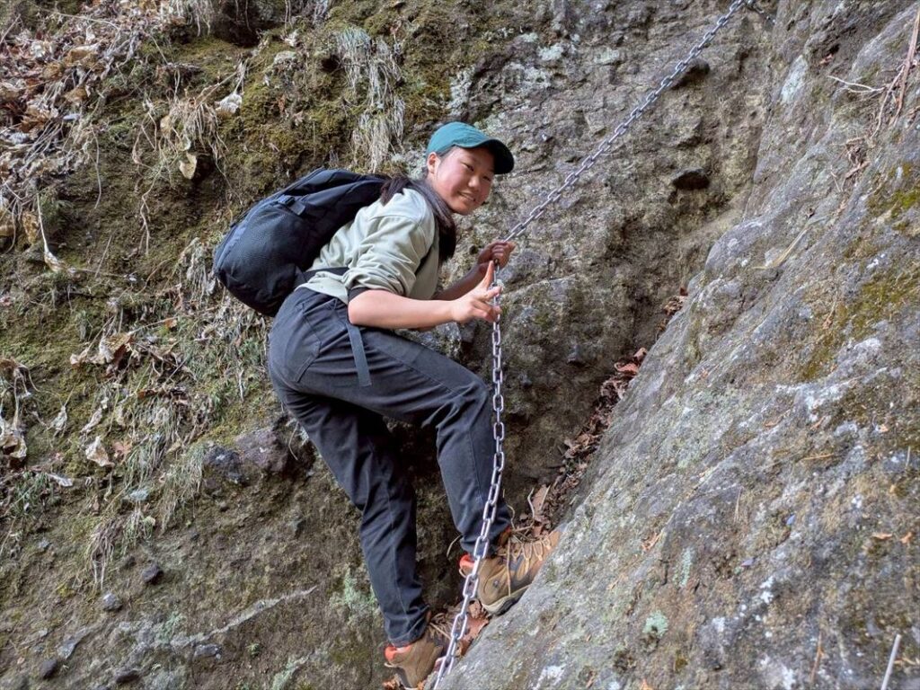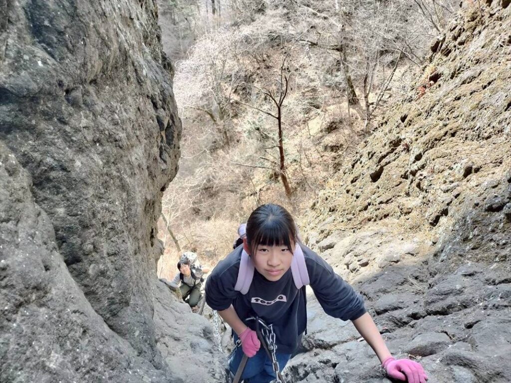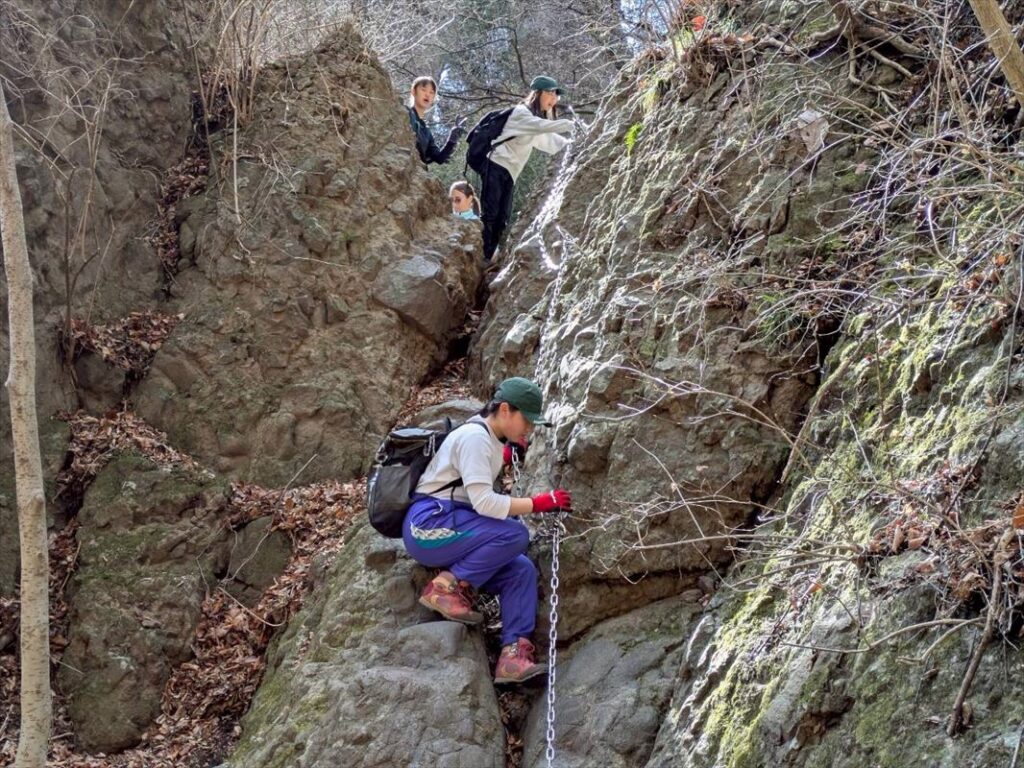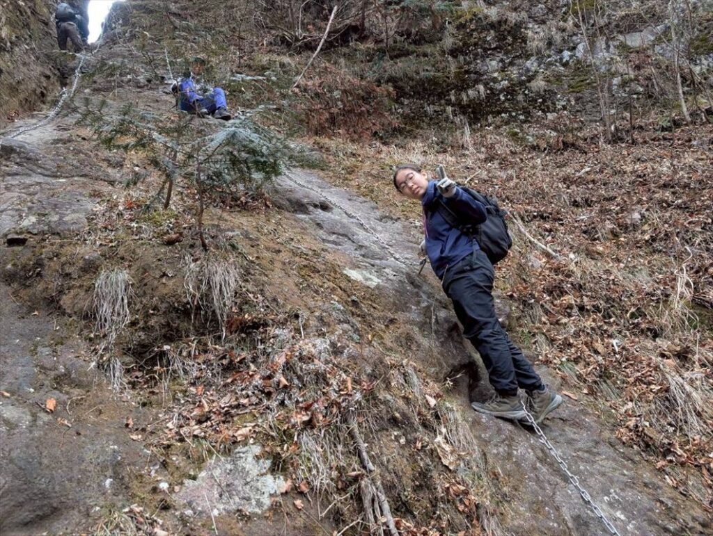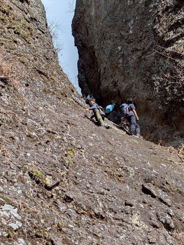 下りは足場が見えづらくさらに難しく感じましたが、全員無事に鎖場を超えました。