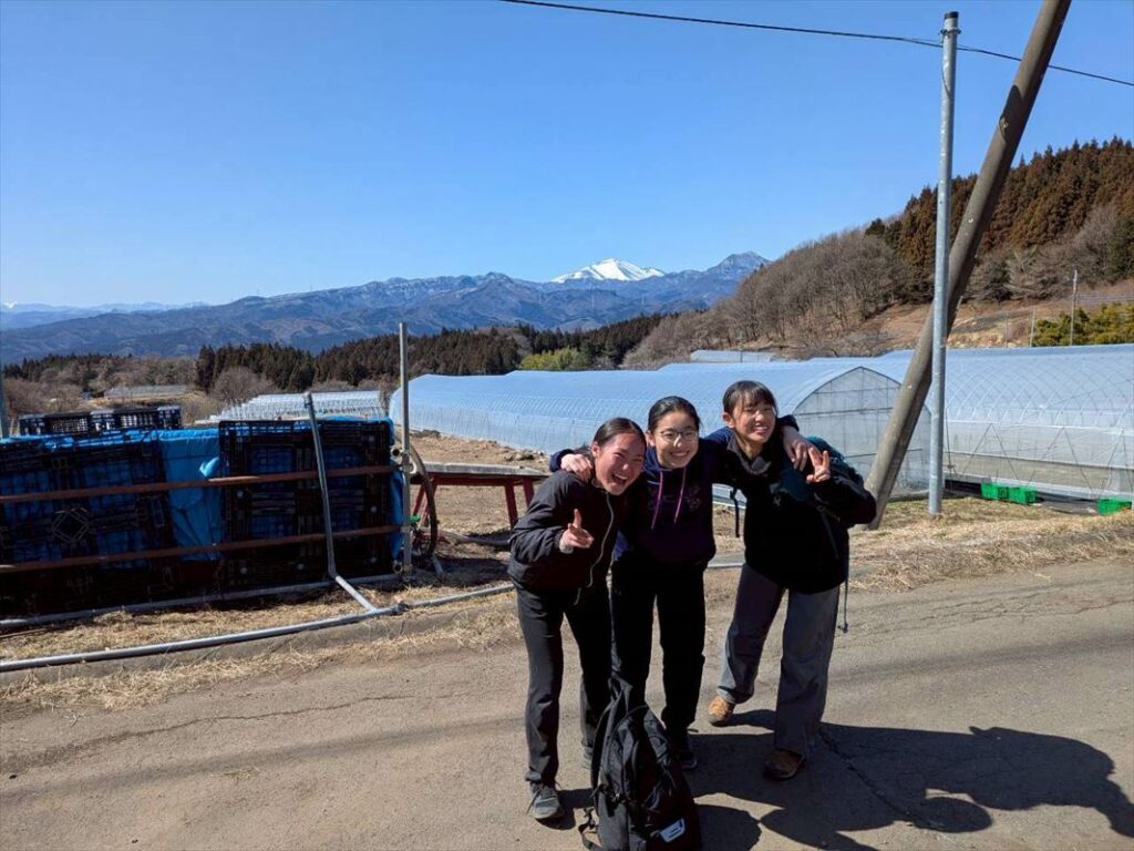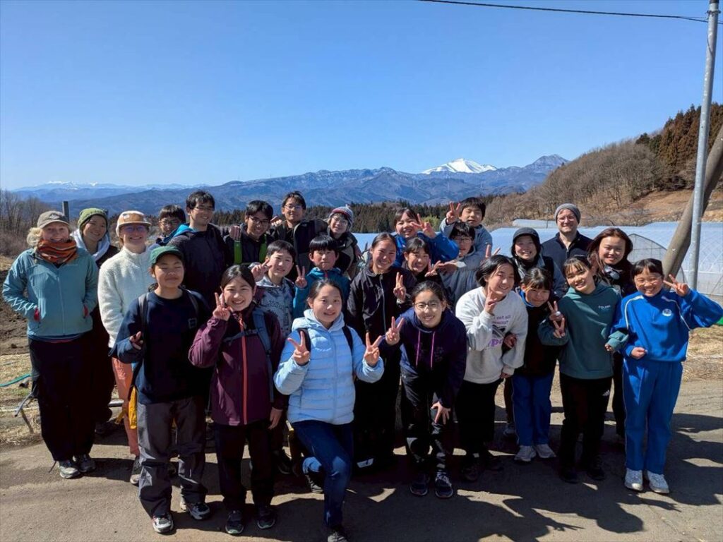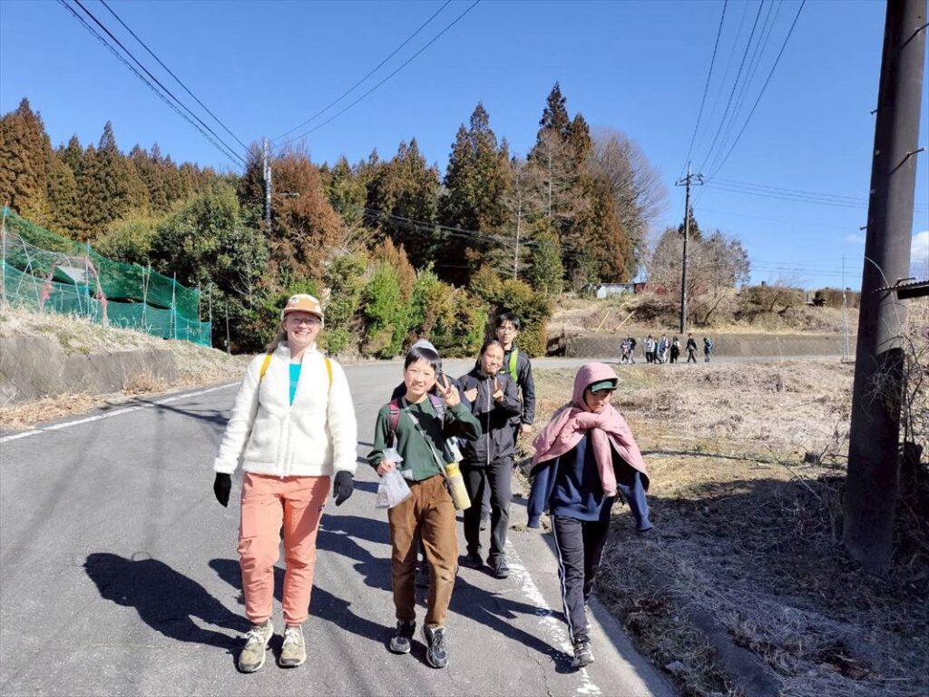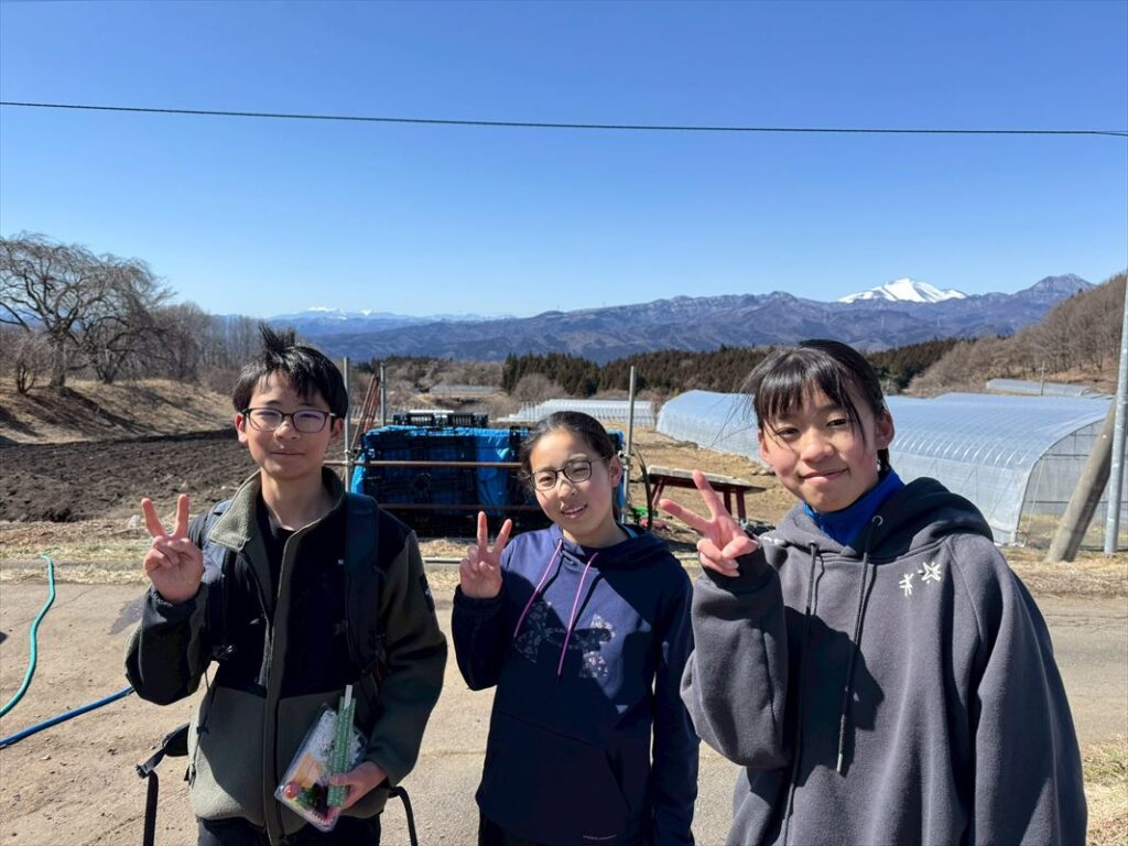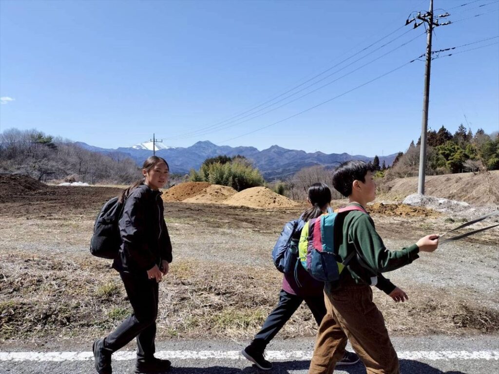 腹ごしらえをして、チームごとに出発します。途中、浅間山、谷川岳などの雪山が広がり、疲れてきた子供たちも景色に元気をもらいます。