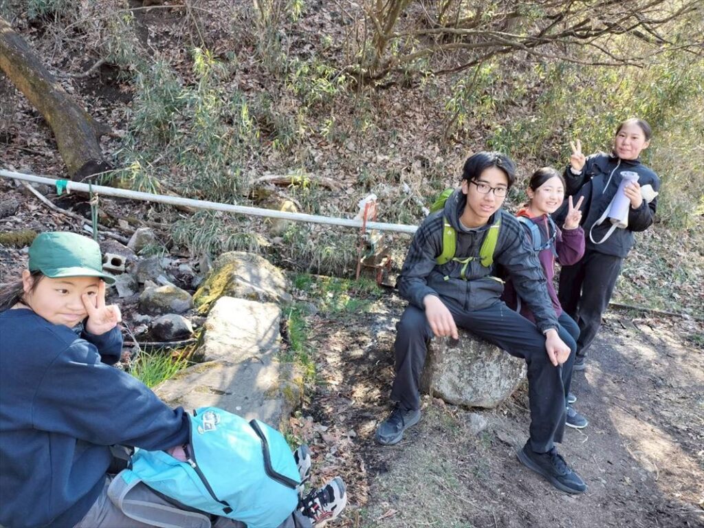上り坂を超え、11時前には昼食の場所に全員たどり着きました!かなりのハイペースで、みんないい顔しています。